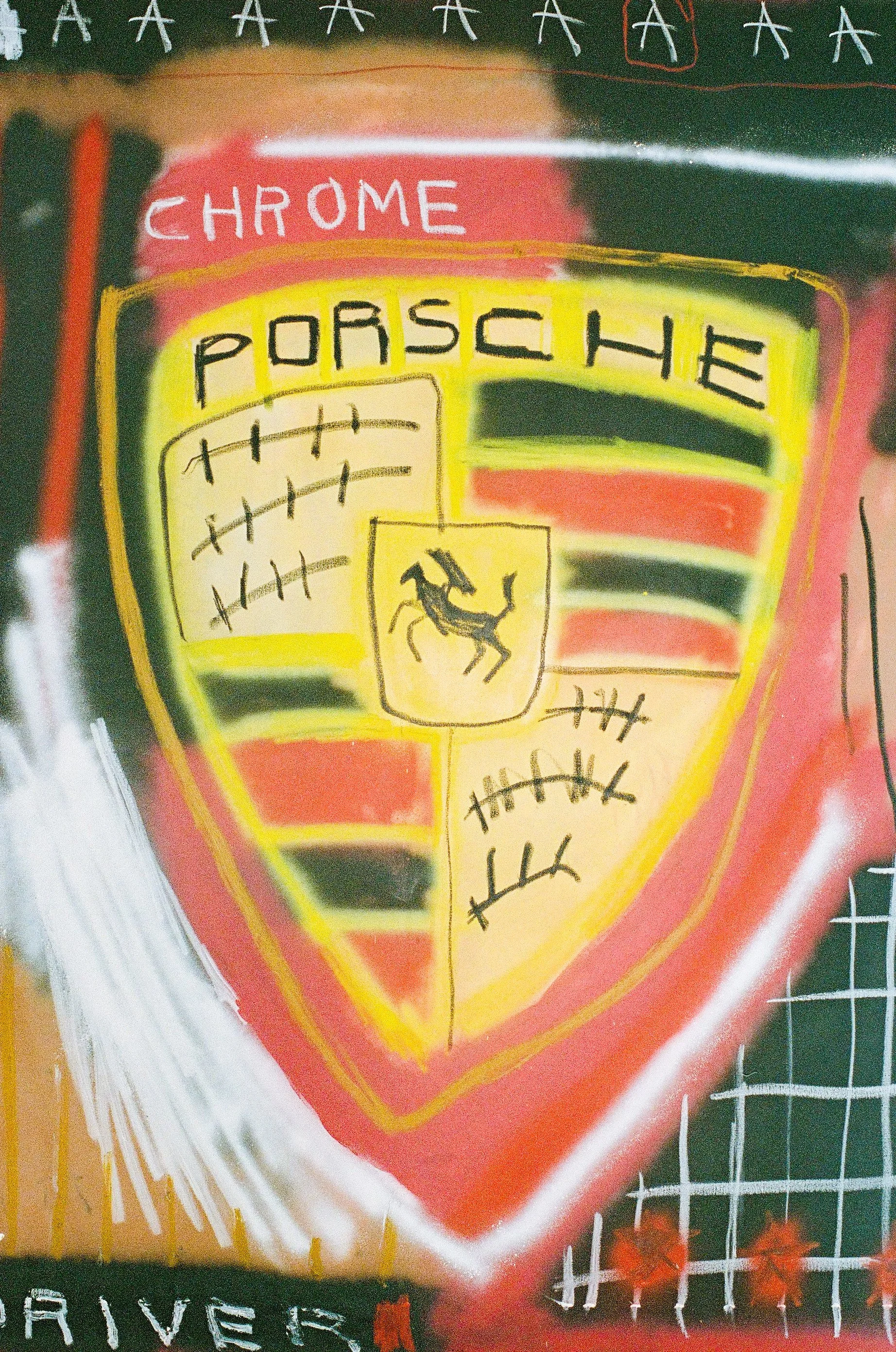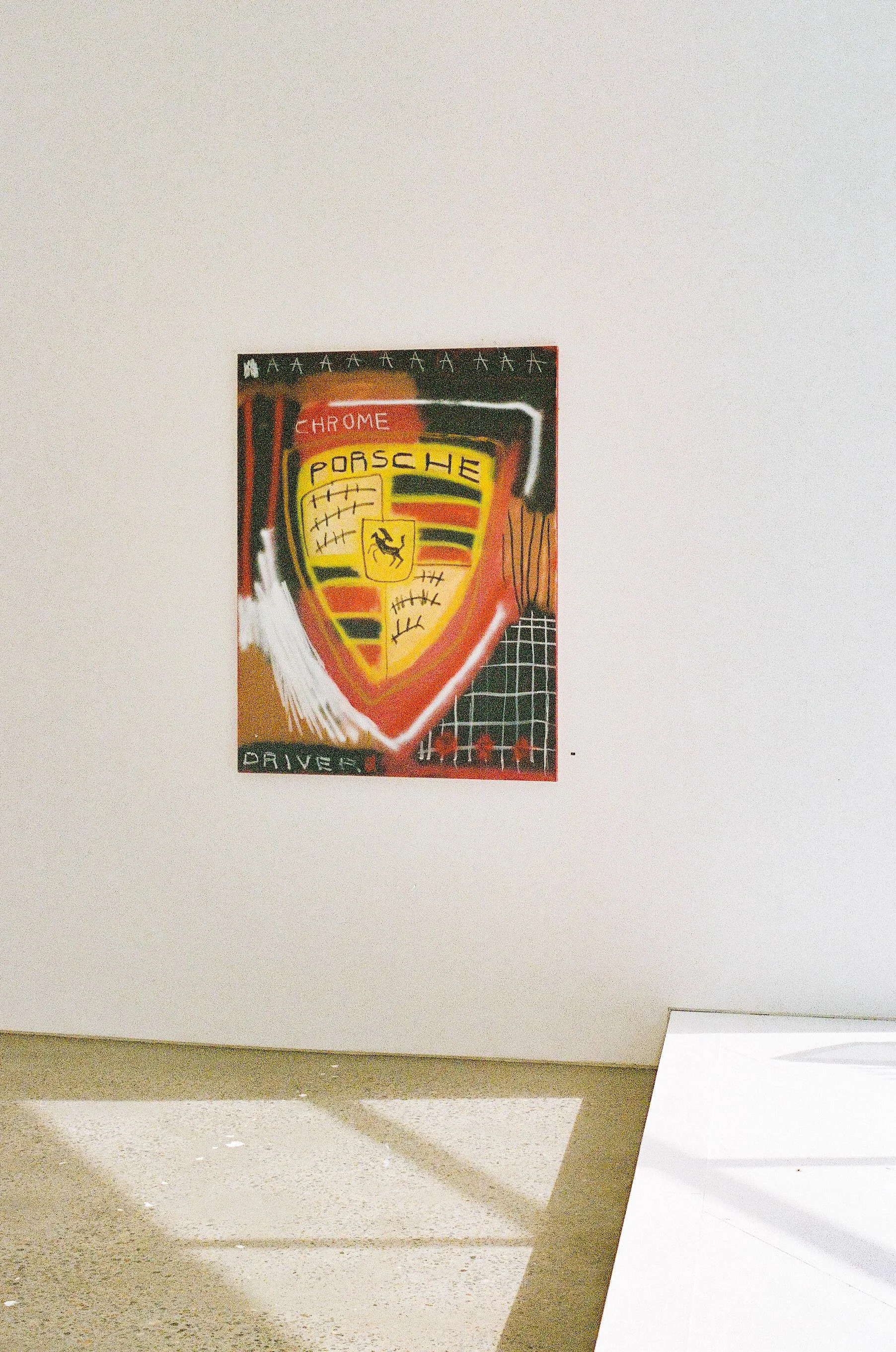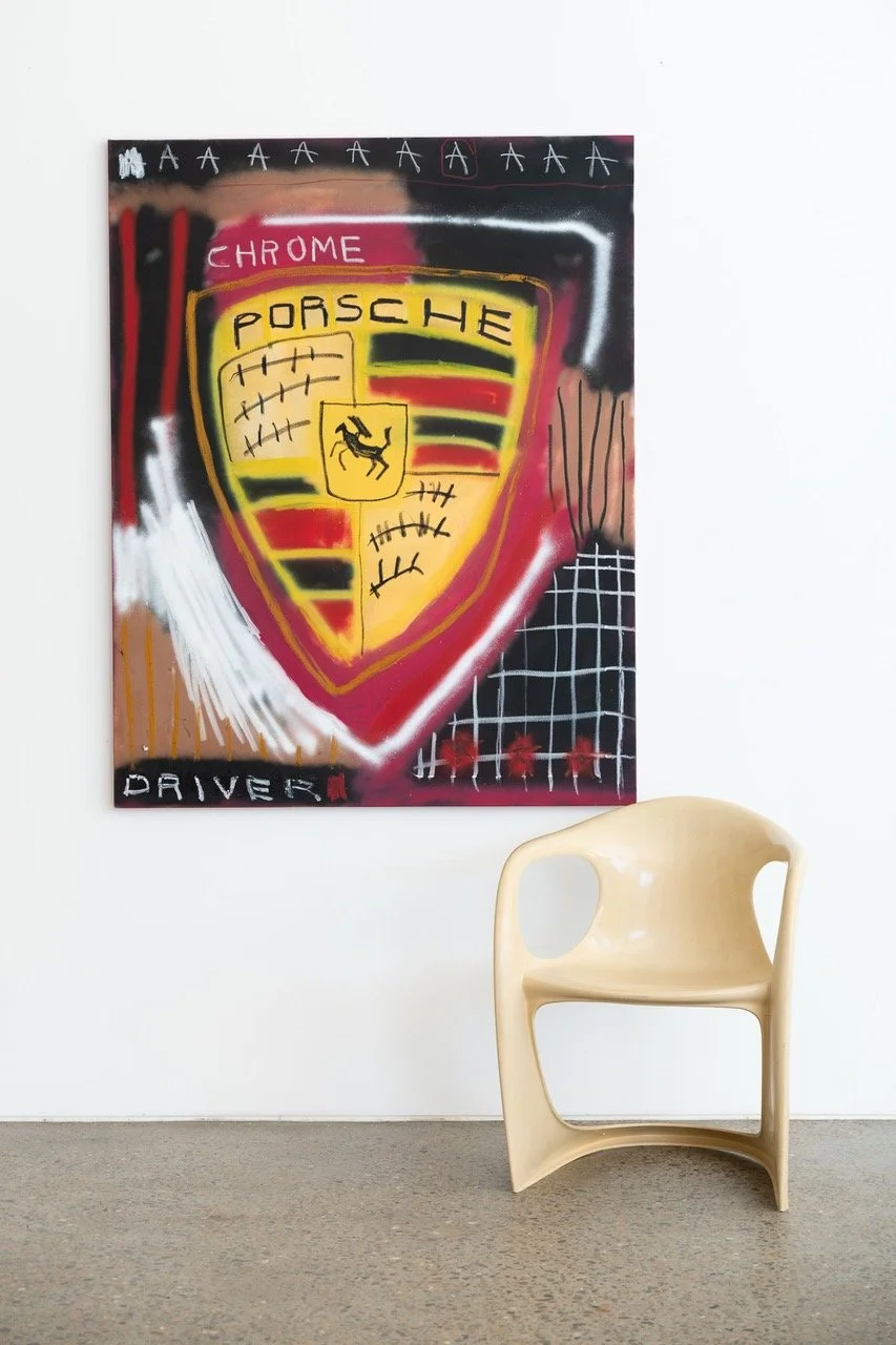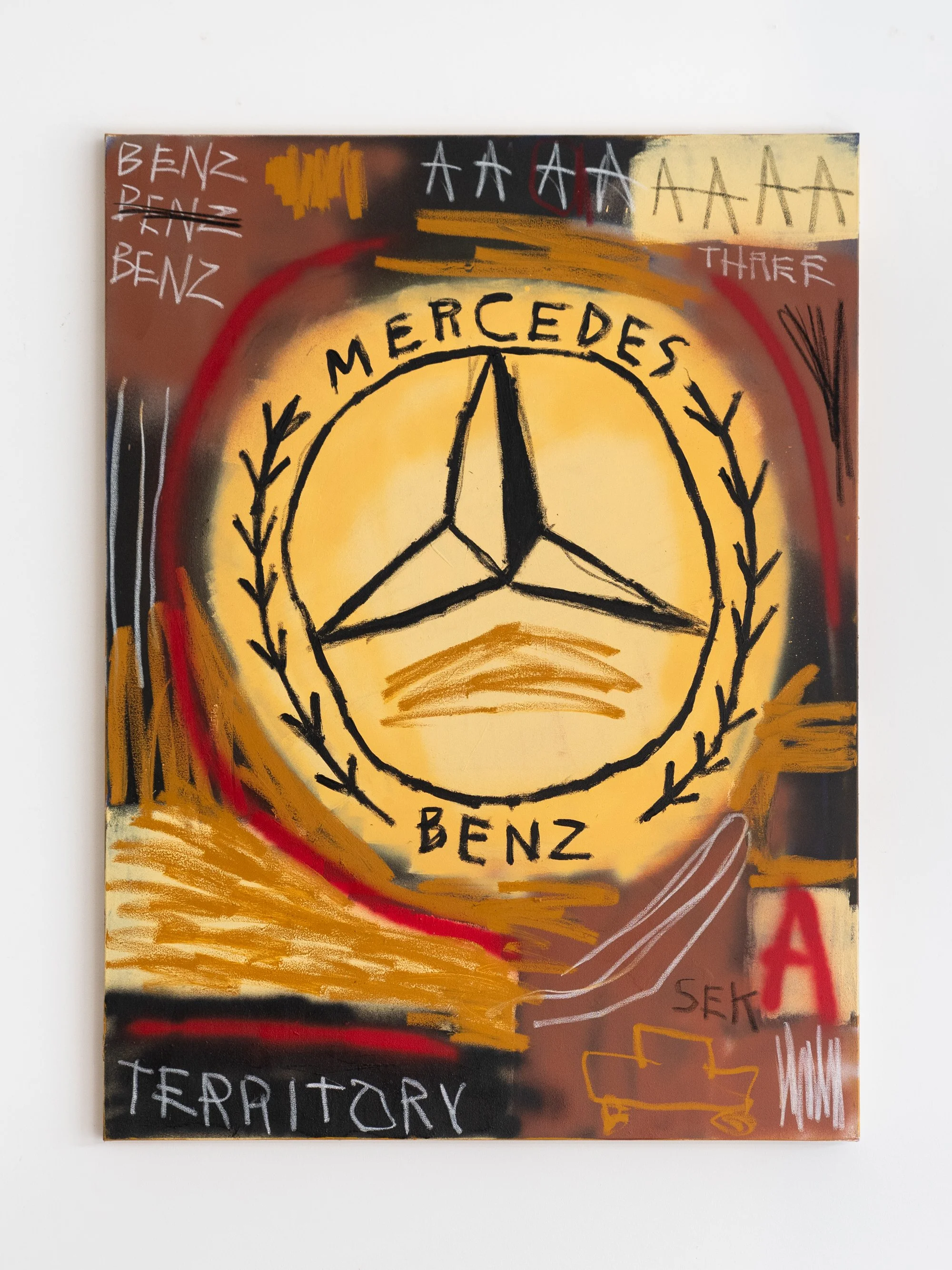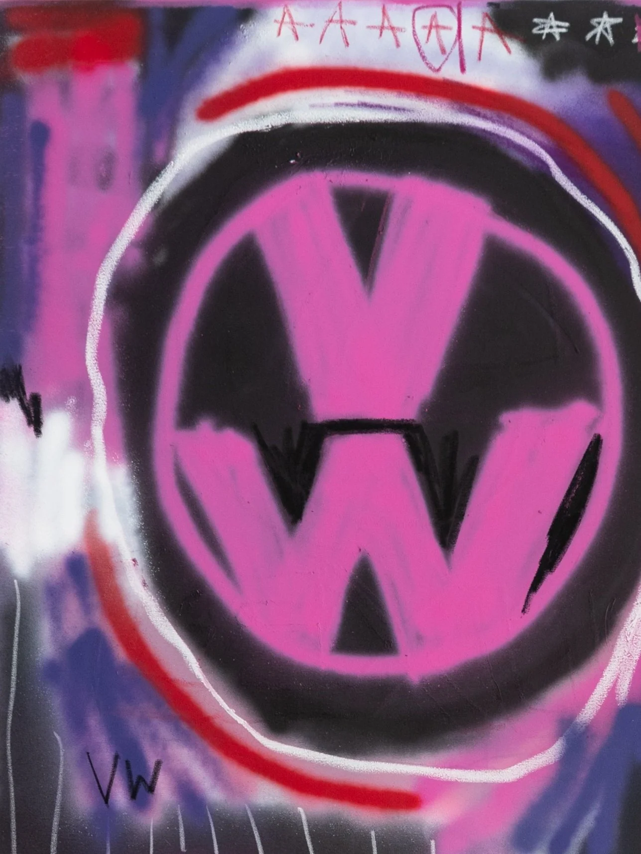 Spray Paint, Acrylic and Oil Pastel on canvas on timber board